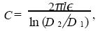 式中l(wèi)為同軸電纜長(zhǎng)度; E為填充介質(zhì)的介電常數(shù);D1 為芯線直徑;D2 為屏蔽網(wǎng)的內(nèi)徑; L為填充介質(zhì)的磁導(dǎo)率; μ0 為真空磁導(dǎo)率. 同軸電纜的分布電容與電感除與其長(zhǎng)度成正比外, 還與屏蔽網(wǎng)的內(nèi)徑和形狀密切相關(guān)。當(dāng)同軸電纜足夠長(zhǎng)時(shí), 其分布電感均比較大; 此時(shí)外力引起的同軸電纜變形只會(huì)引起分布電容和分布電感的微小變化。因?yàn)榉植茧娙菖c分布電感的變化趨勢(shì)相反, 在設(shè)計(jì)該傳感器時(shí), 為了突出分布電容對(duì)傳感器性能的影響, 要在同軸電纜的芯線上串接一個(gè)較大的電感,使分布電感的變化率遠(yuǎn)遠(yuǎn)小于分布電容的變化率。同軸電纜的特性阻抗為
