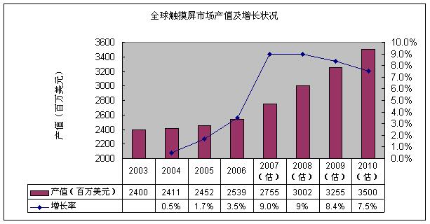 圖1 全球觸摸屏市場產(chǎn)值及增長狀況