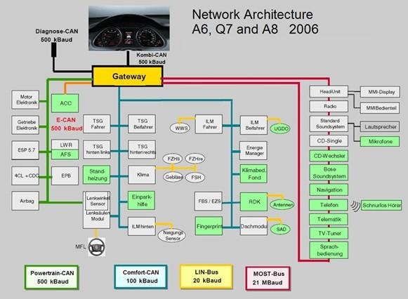 例如,可能會通過診斷用CAN總線來訪問每個(gè)單獨(dú)的ECU、詢問其狀態(tài)、讀取錯(cuò)誤代碼,甚至刷新程序固件。如今,出于成本考慮,許多應(yīng)用中常常會共享傳感器。這意味著一個(gè)傳感器模塊的測量值將被幾個(gè)ECU處理。