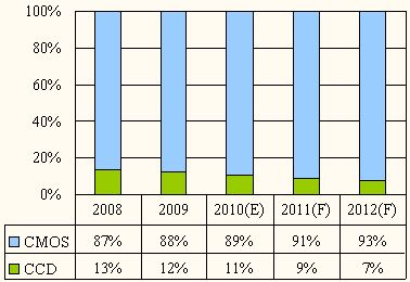拓墣產(chǎn)業(yè)研究所(TRI)針對(duì)全球Image Sensor(影像傳感器)IC組件市場(chǎng)分析,2010年全球Image Sensor組件應(yīng)用市場(chǎng)規(guī)模為7.1億美元,在經(jīng)過(guò)金融風(fēng)暴的影響后仍持續(xù)呈現(xiàn)正成長(zhǎng)趨勢(shì)。而影像傳感器市場(chǎng)占比猶以CMOS Sensor之比重極高,平均占比約在9成左右;分析制程技術(shù)發(fā)展趨勢(shì)來(lái)看,預(yù)期未來(lái)將會(huì)朝整合型傳感器(Multi-Sensors)的模塊化發(fā)展,縮減零組件體積空間及材料種類。