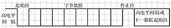 數(shù)據(jù)傳輸時使用單線串行輸出,用口線模擬串行發(fā)送,發(fā)送字節(jié)時在口線上依次發(fā)送如圖4所示數(shù)據(jù)(數(shù)據(jù)為0時拉低口線電平,數(shù)據(jù)為1時拉高口線電平),位持續(xù)時間根據(jù)波特率計算,本應用中設定波特率為9600b/s。當沒有數(shù)據(jù)發(fā)送時,輸出口線上維持高電平。