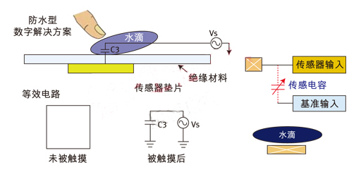 圖3:數(shù)字觸摸方案;在存在水滴時仍具有魯棒的性能。
