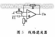 通常,經(jīng)典濾波器用得最多。濾波電路可以由無源元件R、L、C組成,如圖5所示的線路濾波器;也可以包含有源元件(如圖6所示),它的優(yōu)點主要是具有一定的信號放大和帶負(fù)載能力。濾波電路從功能上又可分為四類:低通(LP)、高通(HP)、帶通(BP)、帶阻(BS)濾波器。每一種又有模擬(AF)與數(shù)字(DF)濾波器兩種形式。由于傳感器信號一般為緩慢變化的信號,故選用低通濾波器抑止高頻噪聲信號最多。通常如巴特沃斯濾波器、切比雪夫濾波器、橢圓濾波器等。常用低通濾波電路如圖6所示。