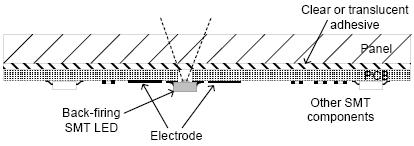 d.如果在感應(yīng)電極中開孔加裝LED,必須加大感應(yīng)電極以彌補(bǔ)開孔所損失的面積,所以增加的感應(yīng)電極面積至少必須相等於開孔的面積。