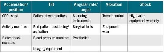 通過一個功耗極低的緊湊器件來精確檢測和測量運動的能力,幾乎對任何涉及到運動的應用都是有價值的,甚至對那些運動要求不是很關鍵的應用也是有價值的。表1按運動類型列出了一些基本醫(yī)療應用。需要解決更多挑戰(zhàn)的更高級應用將在稍后討論。