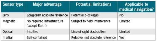 表2 廣泛應用的導航傳感器及其對醫(yī)療導航的適用性