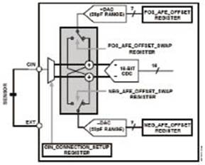 圖4 模擬前端,其中DAC幫助消除寄生電容的影響