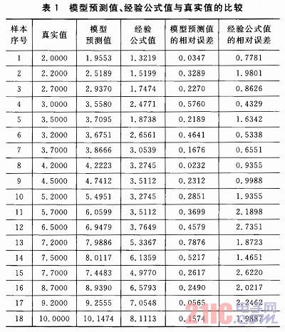 為了驗證測試結果的可靠性,根據(jù)網(wǎng)絡訓練的結果,把測試結果與真實值進行對比。為了突出該方法的優(yōu)越性,與經(jīng)驗公式計算出來的距離值進行比較。表1為模型預測值、經(jīng)驗公式值與真實值的比較。