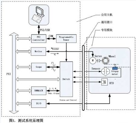 目前,汽車(chē)傳感器沒(méi)有一個(gè)統(tǒng)一的行業(yè)標(biāo)準(zhǔn),基本是按照使用者的要求定制。譬如目標(biāo)輪及其轉(zhuǎn)速、空氣氣隙和傳感器的安裝尺寸各不相同,即使是傳感器裝配到同一種車(chē)型上,也會(huì)隨著安裝位置的不同而存在差異。但是,同一臺(tái)設(shè)備不可能滿(mǎn)足全部傳感器的測(cè)試要求,由此引入模塊化的設(shè)計(jì)思想,即系統(tǒng)中相同的部分,如測(cè)試儀器、測(cè)試軟件、氣動(dòng)控制系統(tǒng)、主電路系統(tǒng),作為公用資源(這里稱(chēng)為“主機(jī)”);對(duì)系統(tǒng)中要求隨著傳感器變化的部分,如目標(biāo)輪及馬達(dá)、夾具及專(zhuān)用電路,被看成模塊。主機(jī)和模塊之間采用快插的方式完成電氣連接且為標(biāo)準(zhǔn)化接口,可進(jìn)行后續(xù)擴(kuò)展。當(dāng)測(cè)試不同傳感器時(shí),選用不同的測(cè)試模塊連接到主機(jī)上即可。