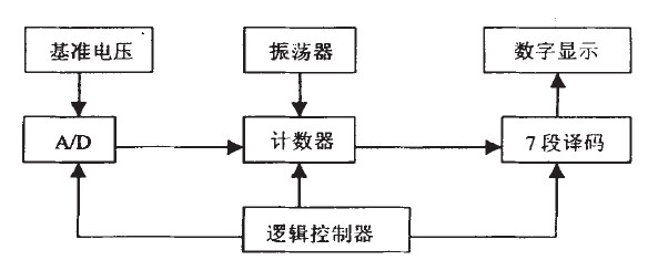 放大后的模擬電壓經(jīng)過A/D轉(zhuǎn)換器實現(xiàn)模擬量到數(shù)字量的轉(zhuǎn)換。A/D轉(zhuǎn)換結(jié)果通過計數(shù)譯碼電路變換成7段譯碼, 最后驅(qū)動顯示出相應(yīng)的數(shù)值, 傳感器驅(qū)動顯示電路方框圖如圖6所示。