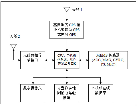 •無(wú)線(xiàn)數(shù)據(jù)傳輸接口,包括GSM/GPRS、WiFi、藍(lán)牙和RFID:無(wú)線(xiàn)數(shù)據(jù)接口的主要目的是接入互聯(lián)網(wǎng),檢索當(dāng)前位置目標(biāo)的在線(xiàn)數(shù)據(jù)庫(kù),在等待GPS定位或沒(méi)有GPS信號(hào)時(shí)提供簡(jiǎn)要的定位信息。如果建筑物內(nèi)預(yù)裝了發(fā)射器,其它的近距離無(wú)線(xiàn)連接如WLAN、藍(lán)牙和RFID也可以提供精度適當(dāng)?shù)氖覂?nèi)定位信息。