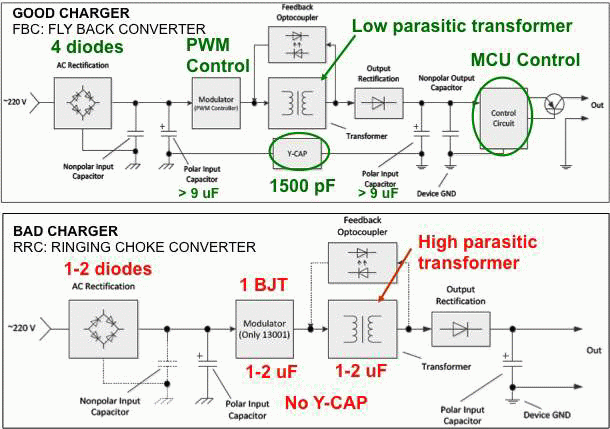 設(shè)計(jì)用于配合特定電話工作的OEM廠商的充電器具有較嚴(yán)格的噪聲規(guī)格,同時(shí),在充電電路中廣泛采用USB連接器為配件市場創(chuàng)造了巨大的機(jī)會(huì)。為了在其中進(jìn)行競爭,配件廠商充分地降低充電器成本。采用低成本電子器件的充電器給手機(jī)充電將注入很多噪聲到觸摸屏,而導(dǎo)致其很可能無法使用。