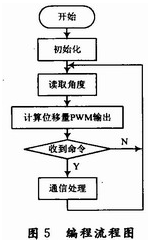 軟件編程主要包含3個模塊:PWM控制電流輸出模塊、RS 485通信模塊、MLX90316的SPI通信模塊,編程流程如圖5所示。PWM控制電流輸出模塊主要通過改變PWM的占空比來調(diào)節(jié)電流的大小。RS 485通信模塊主要用來接收上層系統(tǒng)的指令并根據(jù)指令將數(shù)據(jù)回傳。MLX90316的SPI通信模塊主要用于磁敏角度的讀取,SPI的通訊過程為:主控端先輸出1個0xAA以及1個0xFF作為通信起始信號,然后接著輸出8個0xFF,而從端會同時輸出2個0xFF、4個字節(jié)的角度信號以及4個0xFF,從而完成一次數(shù)據(jù)通訊。