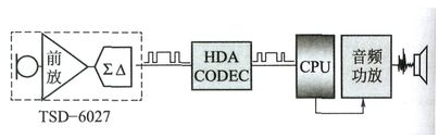 目前國際上IC廠商推向市場的內(nèi)置式數(shù)字傳聲器IC芯片普遍采用∑一△模數(shù)轉(zhuǎn)換編碼格式,此編碼格式與相關(guān)應(yīng)用設(shè)備采用的DSP及CODEC芯片的數(shù)字傳聲器輸入接口格式相兼容?! ?br />