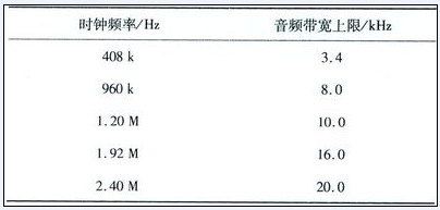 表1  取樣時鐘頻率與音頻帶寬上限對應(yīng)表