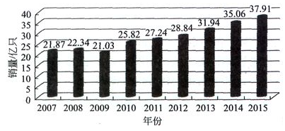 圖10  2007 - 2015年全球微型駐極體傳聲器銷量發(fā)展趨勢(2011年后為預(yù)測)