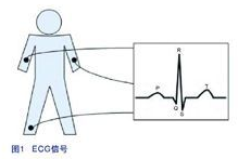 心電圖機(jī)(ECG)可實(shí)時(shí)記錄病人的心跳活動(dòng)。心跳信號(hào)是通過(guò)三個(gè)連接到病人身體的電極測(cè)量出來(lái)。圖1所示為其中一個(gè)電極輸出的ECG信號(hào),圖中包含有五個(gè)測(cè)量點(diǎn),分別是Q、P、R、S、和T,這些測(cè)量點(diǎn)可用來(lái)診斷病人患上心臟病的可能性?! ?br />