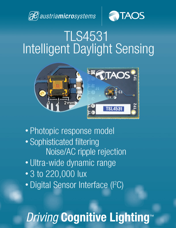 新的傳感器系列由2011年被奧地利微電子收購(gòu)的全球領(lǐng)先智能照明傳感器提供商TAOS所研發(fā),可提供從3勒克斯至220,000勒克斯的動(dòng)態(tài)范圍,可防止直射陽(yáng)光下的傳感器輸出飽和,并通過運(yùn)用適光反應(yīng)模型使傳感器的輸出與人眼的感知一致。