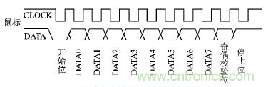 鼠標履行一種雙向同步串行通信協(xié)議,在時鐘信號的作用下串行發(fā)送或者接受數(shù)據(jù)。通常情況下,單片機在總線上具有總線控制優(yōu)先權(quán),可在任何時候抑制來自于鼠標的通信。從鼠標到單片機的數(shù)據(jù)在時鐘的下降沿被讀取,相反,單片機到鼠標的數(shù)據(jù)在時鐘的上升沿被讀取。時鐘信號總由鼠標內(nèi)部芯片提供,時鐘頻率一般在10~20KHz。
