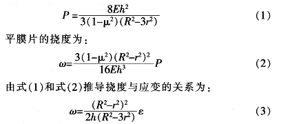 根據(jù)膜的結(jié)構(gòu)與應(yīng)力計(jì)算公式,推出被測壓力與應(yīng)變片測出的應(yīng)變關(guān)系: