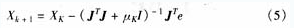 式中,J為Jacobian矩陣,包括網(wǎng)絡誤差項相對于權重和閾值的一階微分 ,e為網(wǎng)絡的誤差項。Jacobian矩陣可以利用標準的BP算法得出,這比直 接計算Hessian矩陣簡單得多。迭代式為: