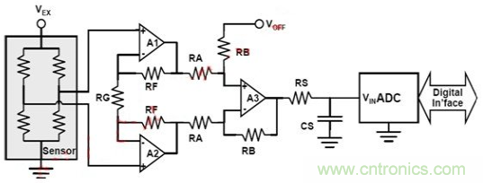 圖2:基本壓力傳感器調(diào)節(jié)電路