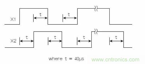該芯片產(chǎn)生的正交X方向輸出信號模擬了普通編碼器的輸出。X和Y信號都可以用于2D系統(tǒng)。OM02以最高約25kHz的頻率產(chǎn)生X1和X2正交信號。圖1顯示了正向X運(yùn)動(向右方向)的時序圖。這種正交輸出在需要時還可以用于直流步進(jìn)電機(jī)控制。