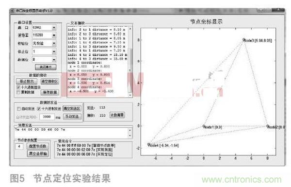 本文設計了節(jié)點的通信方式及消息,在統(tǒng)一的消息格式內(nèi),根據(jù)所要執(zhí)行的任務的不同,具體設計各種應用消息;其次,根據(jù)系統(tǒng)需求和節(jié)點類型的不同,設計并說明了不同節(jié)點的程序流程;同時設計了良好的人機交互定位界面;最后,對網(wǎng)絡節(jié)點的測距性能和定位性能進行實驗分析,驗證了系統(tǒng)基本滿足對測距范圍和測距精度要求和節(jié)點定位的技術要求。