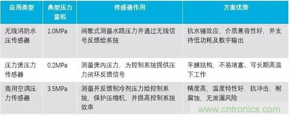 陶瓷電容壓力傳感器因其耐腐蝕、抗沖擊、無遲滯、介質(zhì)兼容性強等優(yōu)勢可以廣泛應(yīng)用在水、氣、液多種介質(zhì)的壓力檢測,尤其適合于汽車系統(tǒng)的惡劣環(huán)境下工作。針對物聯(lián)網(wǎng)及家電等壓力傳感器的新興應(yīng)用市場,陶瓷電容抗沖擊優(yōu)勢可以應(yīng)用于供水管網(wǎng)的水壓測量,完美應(yīng)對水錘效應(yīng);針對可變壓力的壓力煲應(yīng)用,陶瓷電容平膜結(jié)構(gòu)可以避免堵塞。