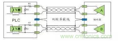 主要用于硬件高速計(jì)數(shù)器(HHSC)的輸入使用,接口電壓為5VDC,在應(yīng)用上為確保高速及高噪音抗性通常采用雙線驅(qū)動(dòng)方式(Line-Drive)。如果工作頻率不高與噪音低也可以采用5VDC的單端SINK或者SRCE接法,串聯(lián)一個(gè)限流電阻轉(zhuǎn)換成24VDC的單端SINK或者SRCE接法。