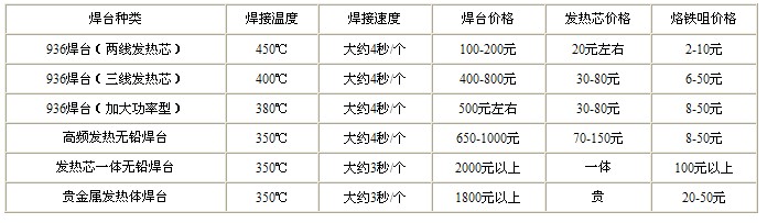 根據(jù)焊接的產(chǎn)品質(zhì)量和工作效率及發(fā)熱芯、烙鐵頭(烙鐵咀)的價格,優(yōu)先推選高頻發(fā)熱無鉛焊臺,第二推選936焊臺(加大功率型)。