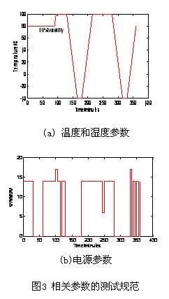 根據(jù)PCM各種工況下的極限環(huán)境,確定了溫度、濕度、電源電壓等重要參數(shù),建立了一套周期為6小時(shí)的測(cè)試規(guī)范,具體如圖3所示,并通過(guò)了利用DSPACE快速開(kāi)發(fā)平臺(tái)和NI虛擬儀器平臺(tái)建立的耐久性測(cè)試實(shí)驗(yàn)平臺(tái)的檢驗(yàn)。