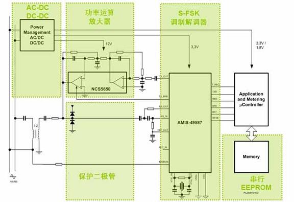 AMIS-49587符合IEC61334-5-1標(biāo)準(zhǔn),為客戶提供眾多應(yīng)用優(yōu)勢(shì)。例如,這器件基于ARM7TDMI處理器內(nèi)核,同時(shí)包含物理接口收發(fā)器 (PHY)和媒體訪問(wèn)控制器(MAC)層,使其以單芯片方案結(jié)合了模擬調(diào)制解調(diào)器前端和數(shù)字后處理功能,而大多數(shù)競(jìng)爭(zhēng)方案需要復(fù)雜的嵌入式軟件來(lái)執(zhí)行與 AMIS-49587相同的功能。設(shè)計(jì)人員使用AMIS-49587調(diào)制解調(diào)器,可以簡(jiǎn)化設(shè)計(jì),能在不到一個(gè)季度的時(shí)間內(nèi)開發(fā)出全套互操作PLC方案,還 降低開發(fā)及應(yīng)用成本。實(shí)際上,基于AMIS-49587的調(diào)制解調(diào)器方案中僅使用2顆IC(另一顆為NCS5650 2 A PLC線路驅(qū)動(dòng)器),外加16顆電阻、17顆電容、2個(gè)二極管、1個(gè)晶體和1個(gè)脈沖變壓器,總元件數(shù)量?jī)H為39個(gè),提供低物料單(BOM)成本。